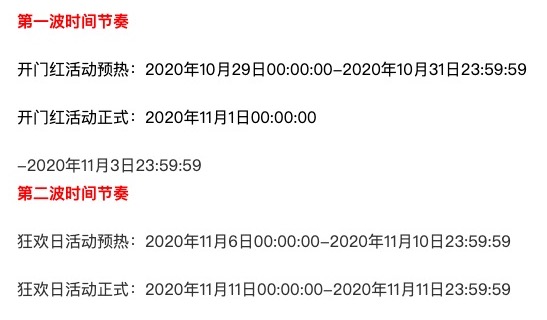 今年官方升级双十一,两波活动,需要报名两次。第一波开门红活动是11月1日零点,第二波狂欢日活动是11月11日整天。