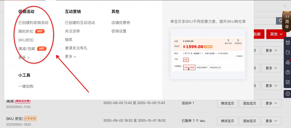 双十一冲销量离不开活动,双十一常用的店铺活动主要都是通过欢乐逛设置促销打折活动: